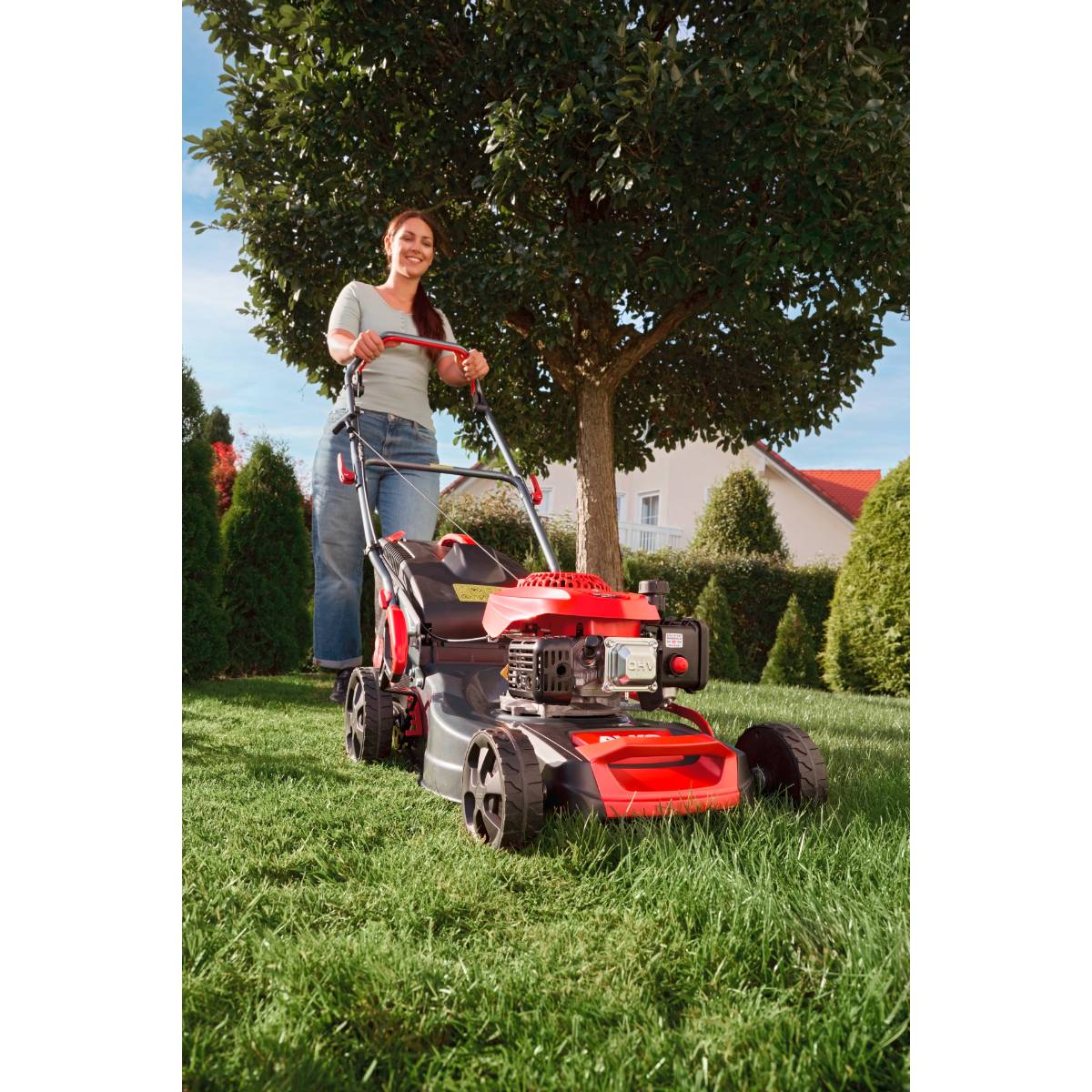 Benzinska kosilica sa širinom košnje od 41 cm omogućuje jednostavno i udobno košenje. Uključuje košenje i sakupljanje, malčiranje. Visina košnje može se centralno podesiti u 7 stupnjeva, jednim potezom ručke, od 25 mm do 75 mm, kako biste prilagodili rezultat košnje svojim osobnim potrebama.