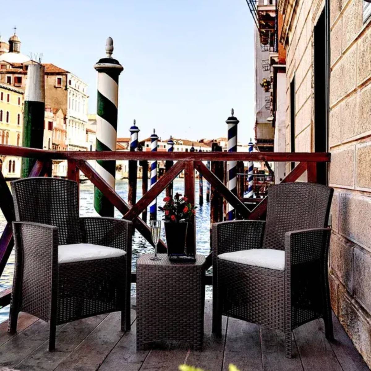 Doživite užitak na otvorenom uz Bica LIDO TERRACE – savršenu garnituru za 2 osobe koja spaja udobnost, praktičnost i moderan ratan dizajn. Idealna za balkone, manje terase ili lođe, ova garnitura pruža sve što vam treba za opuštajuće trenutke u manjem prostoru.