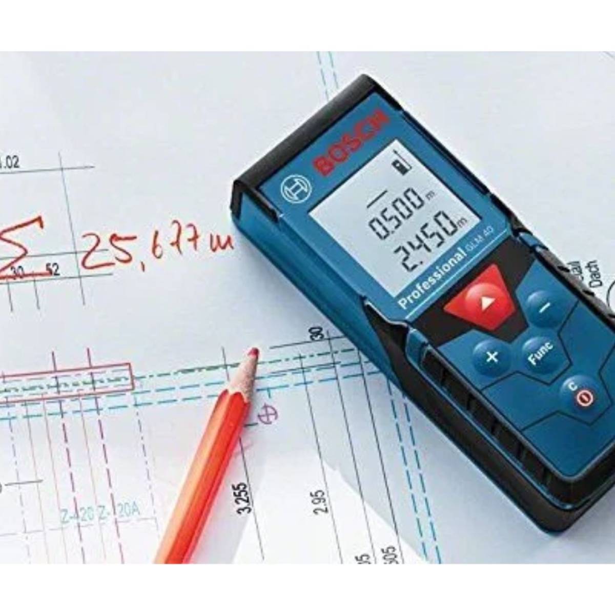 Laserski metar Bosch GLM 40 predstavlja idealno rješenje za precizno mjerenje udaljenosti. Funkcija memorije omogućuje jednostavan pristup zadnjim deset mjerenjima.