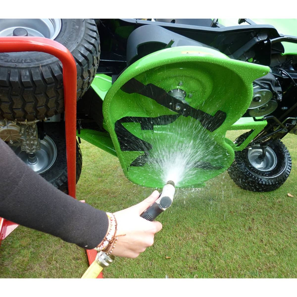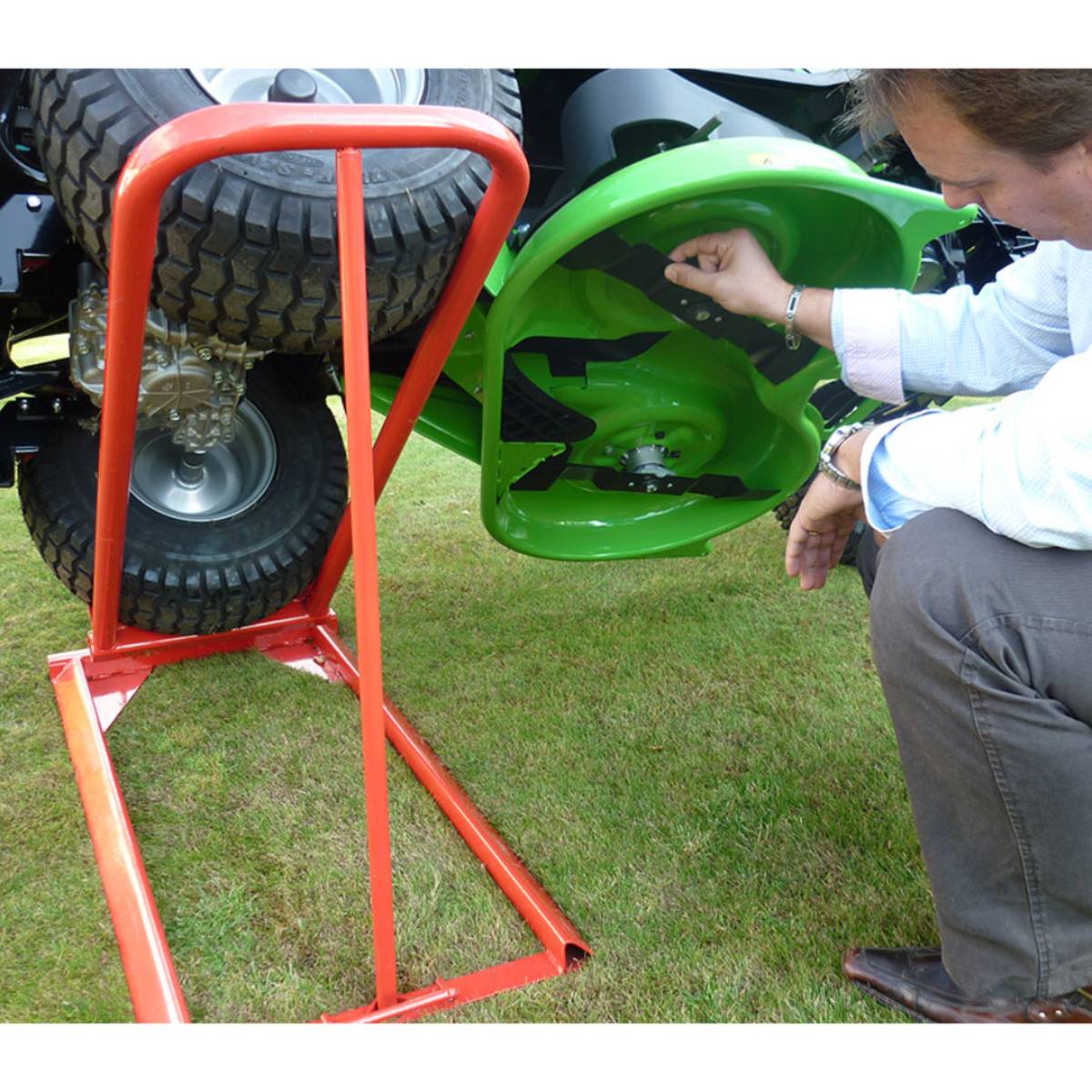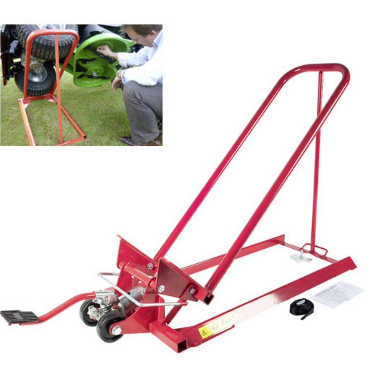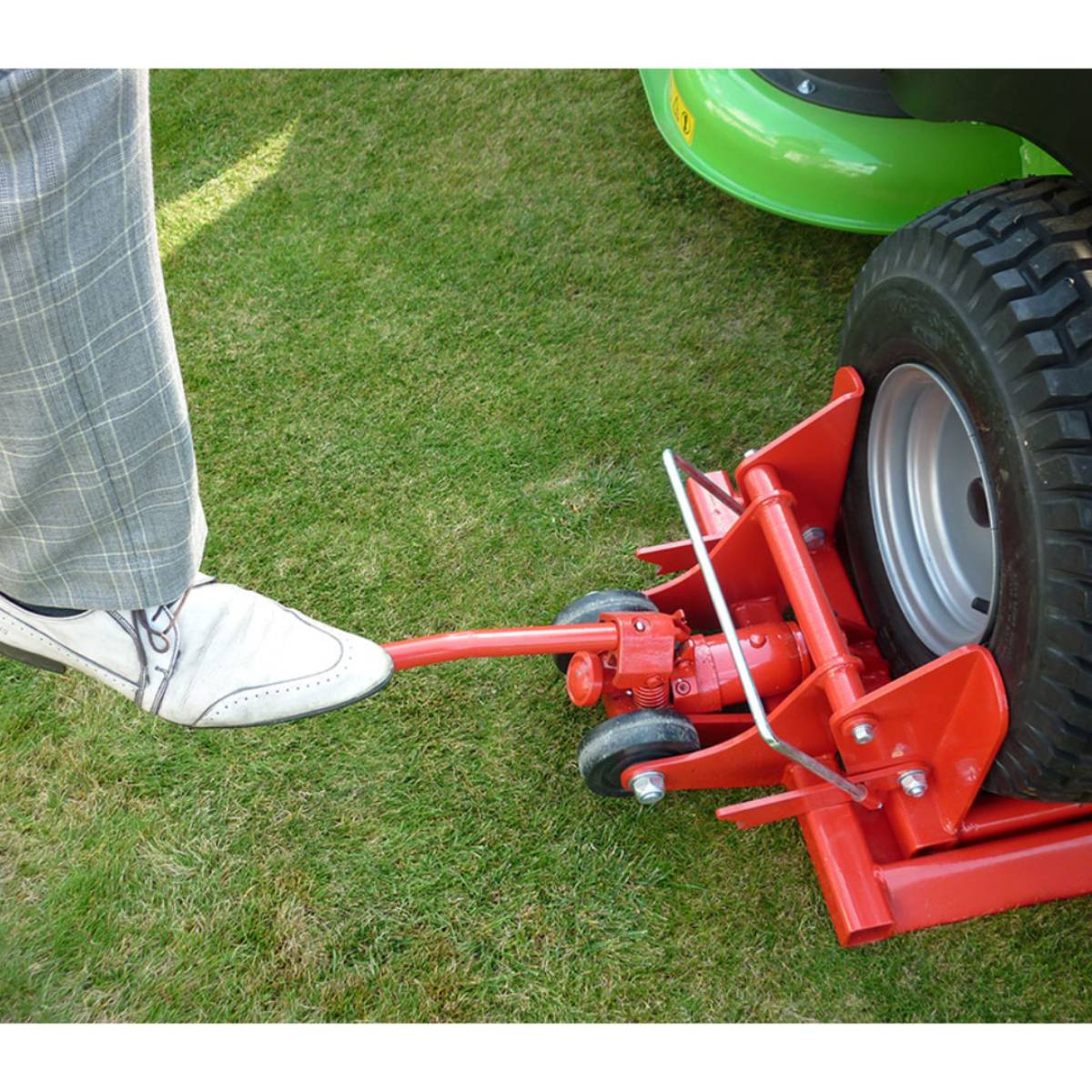 Bočna dizalica za traktorske kosilice pomaže u pojednostavljenju čišćenja i održavanja vaše kosilice. Ovaj model može podići kosilice traktora koje ne prelaze 300 kg (660 Lb). Bočni nagib omogućuje siguran pristup palubi kosilice. Može se lako pomicati zahvaljujući ručici i velikim kotačima. Pumpa hidraulične dizalice opremljena nožnom papučicom olakšava naginjanje bez ikakvog napora. Aktivna sigurnost s automatskim blokiranjem te sigurnosna podrška, omogućuju bezbrižno obavljanje poslova čišćenja i održavanja. Dolazi s podesivim remenom za još više sigurnosti. Isporučuje se s potpornom kukom i sigurnosnim zatikom, a lako se može pohraniti u garaži ili skloništu. Raspon proizvoda omogućuje da jednostavno održavate svoju opremu za vrtlarstvo, poboljšate njihovu performansu te im produžite životni vijek.