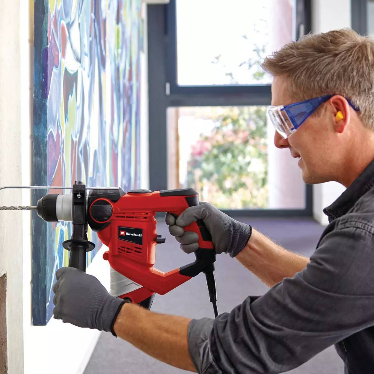 TC-RH 900 pneumatska čekić bušilica pruža odličnu podršku uradi sam majstorima kod građenja, renoviranja ili razbijanja zidova. Bušilica ima tri opcije rada: udarno bušenje, bušenje i klesanje. SDS Plus prihvat pribora olakšava izmjenu u trenu. Snažan motor od 900 W stvara udarac jačine 3 J. Zahvaljujući robusnom aluminijskom kućištu prijenosa s kvalitetnim zupčanicima, TC-RH 900 je iznimno izdržljiv i impresivne snage. Zaštita uređaja i korisnika u radu je potpomognuta kliznom spojkom koja automatski zaustavlja rad uređaja u slučaju zaglavljivanja dlijeta. Dodatna drška je opremljena zaštitom od okretanja za sigurno korištenje. Metalni graničnik dubine jamči da će svaka rupa biti iste dubine. Bušilica se isporučuje u praktičnom plastičnom koferu.