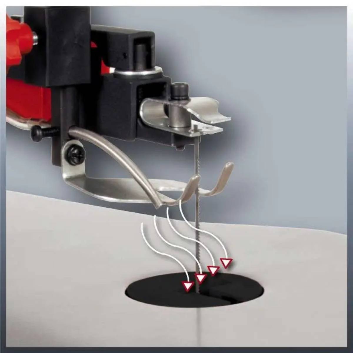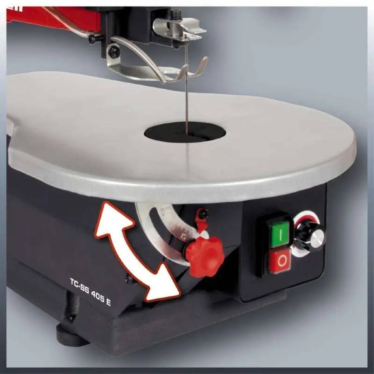 Pila za izrezivanje TC-SS 405 E koristan je pomoćnik za izradu modela i za druge povremene poslove preciznog rezanja. Čvrste noge baze pile osiguravaju stabilnost i tih rad. Zahvaljujući nagibnom radnom stolu, individualizacija je brza i laka. Za stvarno precizne rezultate brzina oštrice je elektronički kontrolirana s velikom preciznošću. Praktični uređaj za ispuhivanje TC-SS 405 E čuva obradak bez strugotina, što olakšava rezanje točno duž označene konture. Osim toga, može se koristiti adapter za usisavanje prašine kako bi radno mjesto bilo ugodno čisto. Alati se mogu brzo i sigurno promijeniti bez alata u bilo kojem trenutku pomoću priložene poluge za stezanje.