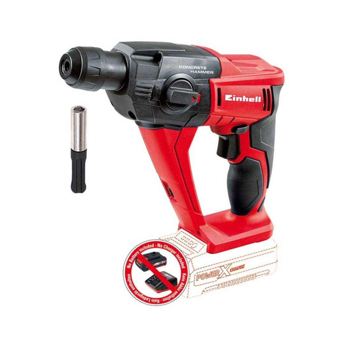 TE-HD 18 Li-Solo aku čekić bušilica je robustan i svestran alat za bežično uvrtanje vijaka i bušenje s dodatnom snažnom funkcijom čekića. Pneumatski udarni mehanizam omogućuje jednostavno bušenje u zidu i betonu. Zahvaljujući posebnom ergonomskom obliku ručke s mekanim rukohvatom, čekić bušilica u svakom trenutku udobno i sigurno leži u vašoj ruci. Praktična funkcija brzog zaustavljanja za sprječavanje neželjenog rada alata za bušenje i LED svjetlo, koje optimalno osvjetljava radni prostor, nude dodatnu jednostavnost korištenja. Standardna svrdla za beton također se mogu mijenjati brzo i bez alata na automatskom SDS-Plus prihvatu. 30-minutni brzi punjač osigurava brzo punjenje snažne baterije sustava od 18 volti, koja se može koristiti u mnogim drugim uređajima iz obitelji Power X-Change. Zahvaljujući litij-ionskoj tehnologiji, ove baterije se više ne mogu samostalno prazniti, a uređaji ostaju mali, lagani i praktični. Baterija ima integrirani indikator kapaciteta za brzu vizualnu provjeru trenutne razine napunjenosti. PAŽNJA: Ovaj uređaj se isporučuje BEZ baterije i punjača i stoga je isplativo proširenje postojećih uređaja iz Einhell Power X-Change obitelji.