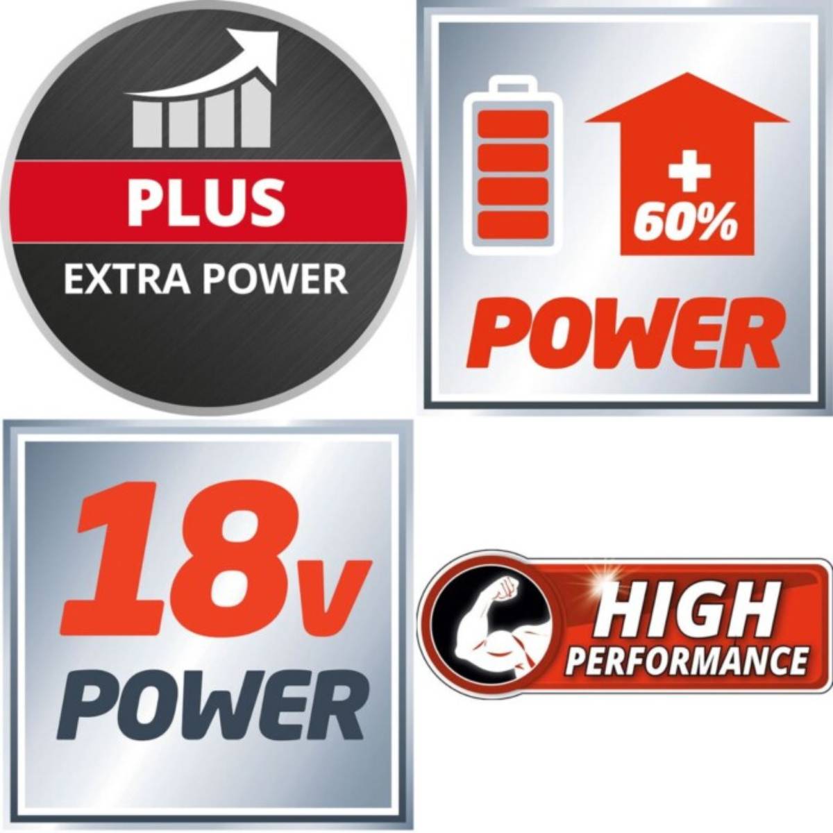 Einhell baterija 18V 5,2 Ah Power X-Change PLUS član je višenamjenskog i potpuno izmjenjivog akumulatorskog sistema Power X-Change. Power X-Change punjive baterije mogu se univerzalno koristiti za napajanje i izdržljivost svakog akumulatorskog alata iz cijele obitelji proizvoda za vrt i radionicu. Prednosti za kupca su očite: jedna baterija i jedan punjač za sve alate ne samo da štede značajne troškove kupnje, univerzalna upotreba pomaže u zaštiti okoliša i također pruža fleksibilnost u domu i vrtu. Također uklanja neurednost i kaos različitih baterija i punjača za svaki zasebni alat. Štoviše, PLUS tehnologija predstavlja dodatnu snagu za energetski intenzivne poslove. Osim toga, visokokvalitetna baterija otporna je na memorijski efekt i samopražnjenje koje je obično povezano s baterijama, kako bi pružila stalnu visoku snagu. 18 V 5,2 Ah PXC PLUS je vrhunska punjiva baterija iz Power X-Change obitelji i također je prikladna za TWIN-PACK upotrebu za 36 V aplikacije. ABS procesno kontroliran aktivni sustav upravljanja baterijom ima mikroprocesor za trajno praćenje parametara baterije. Stoga osigurava maksimalnu sigurnost, optimalne performanse alata, maksimalno vrijeme rada i maksimalni životni vijek. Trenutna razina napunjenosti može se provjeriti na LED zaslonu u 3 koraka. Kućište je dizajnirano tako da bude otporno na prašinu, koroziju i mehaničke utjecaje. Gumeni premaz pruža visoku zaštitu baterije od udaraca uz dobro držanje. Postoji ručka u obliku korita koja omogućuje jednostavno uklanjanje sa svakog alata.