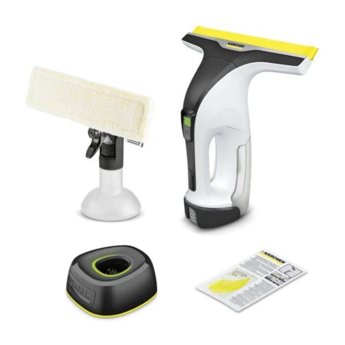 WV 4-4 Plus Window Vac aku set oduševljava zamjenjivom baterijom za neprekidno vrijeme rada bez prekida, LED indikatorom stanja baterije, kao i inovativnom silikonskom oštricom koja omogućuje čišćenje prozora sve do ruba poda. Pametna kombinacija bočice za prskanje i mikrovlaknaste krpe za brisanje, kao i funkcija usisavanja usisavača za prozore, osiguravaju blistave prozore – bez pruga i ostataka. Svi drugi glatki površini također se mogu lako očistiti. Čišćenje prozora s ergonomskim Kärcher WV 4-4 Plus baterijskim Window Vac setom posebno je higijensko jer ne dolazi u izravan kontakt s prljavom vodom, čak i kada se spremnik prazni i čisti. 4 V Kärcher Battery Power zamjenjiva baterija nije uključena u opseg isporuke. Kompatibilan sa svim uređajima u 4 V Kärcher Battery Power platformi.