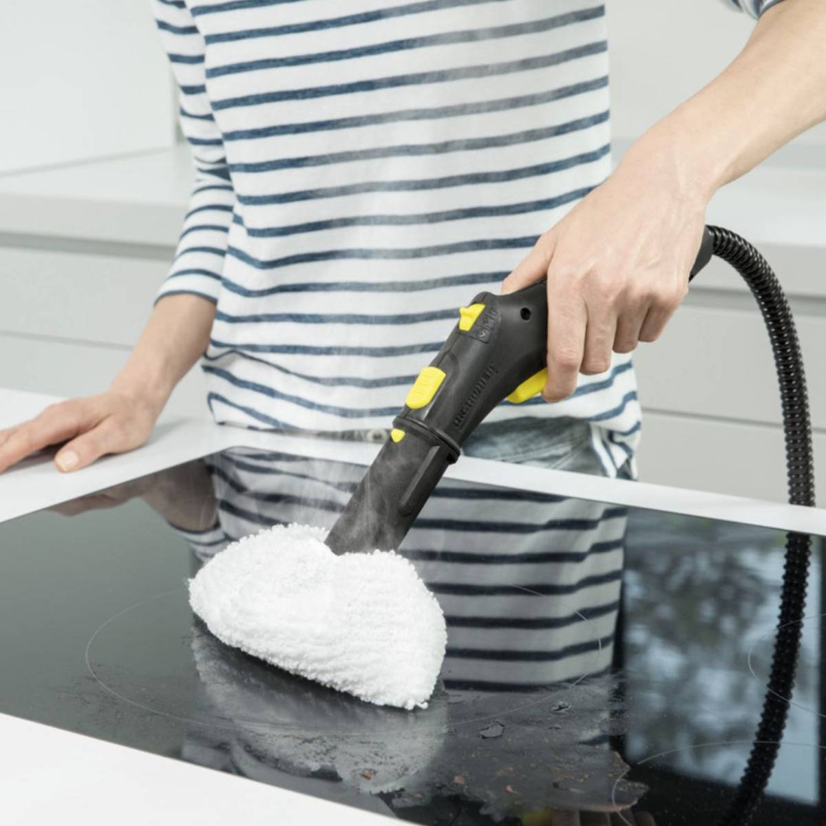 Temeljito čišćenje s Kärcher parnim čistačem uklanja 99,999% koronavirusa* i 99,99% svih uobičajenih kućanskih bakterija** s tipičnih tvrdih površina u kućanstvu. Kada se različiti dodaci koriste prema namjeni, pločice, ploče za kuhanje, nape, pa čak i najmanji otvori se higijenski čiste. Čak se i tvrdokorna prljavština pouzdano uklanja.