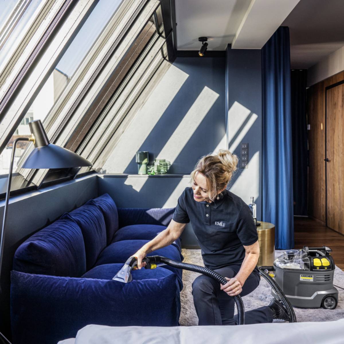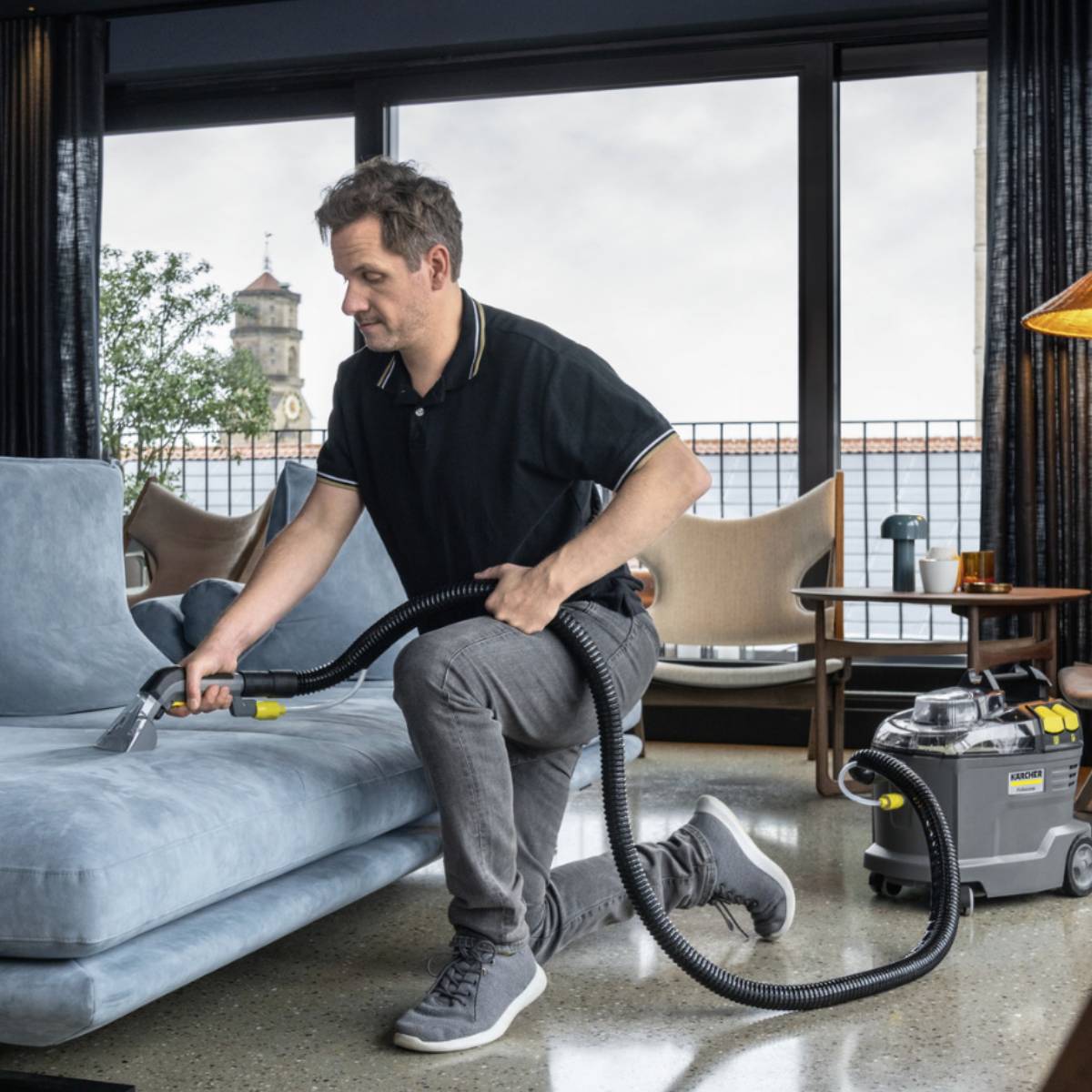 Savršeni učinak čišćenja – Savršeno dubinsko čišćenje tekstilnih površina. Brzo sušenje znači da se površine mogu brzo ponovno koristiti zahvaljujući izvrsnom učinku povratnog usisavanja. Izvrstan rezultat čišćenja s vidljivim učinkom prije i poslije.