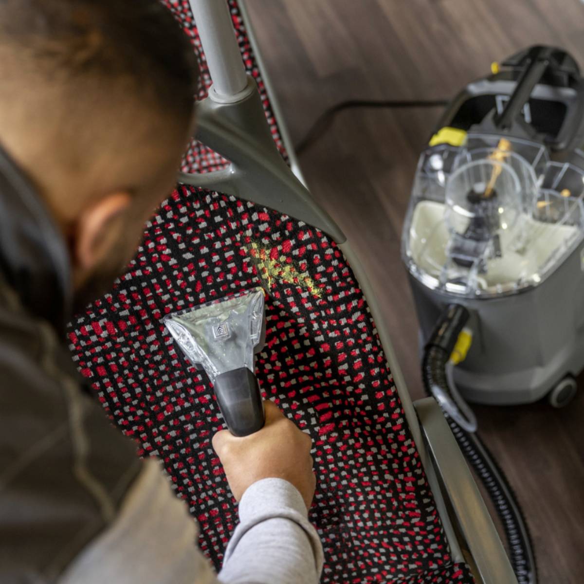 Robustan, izdržljiv, učinkovit: Puzzi 8/1 uređaj za ekstrakciju i prskanje iz Kärchera impresivno čisti presvlake i uklanja mrlje s tekstilnih površina s izvanrednim i higijenskim rezultatima čišćenja i visokom učinkovitošću. Kompaktni stroj za ekstrakciju i raspršivanje raspršuje otopinu za čišćenje duboko u tekstilna vlakna i zatim je ponovno uklanja s rastvorenom prljavštinom. Ova izvrsna izvedba povratnog usisavanja također osigurava brzo sušenje i znači da se tekstilne površine mogu brzo ponovno koristiti – idealno za visoke zahtjeve stručnjaka za čišćenje u hotelskom i ugostiteljskom sektoru ili za čišćenje unutrašnjosti vozila. Također se može koristiti standardna, ekstra kratka mlaznica za presvlake za praktično, ergonomsko čišćenje uskih prostora. Zahvaljujući vrlo maloj težini i ergonomskoj ručki za nošenje, uređaj za ekstrakciju se lako može prenositi jednom rukom. Veliki gumbi kojima se može upravljati rukom ili nogom također povećavaju udobnost za korisnika. Poklopac uređaja i ručna mlaznica su prozirni za bolji pregled prljave vode.
