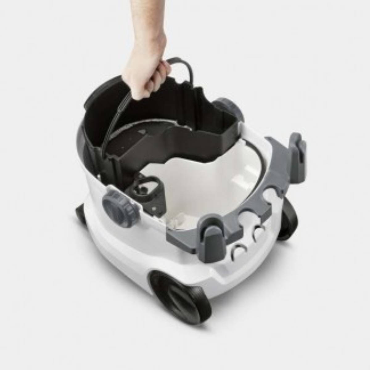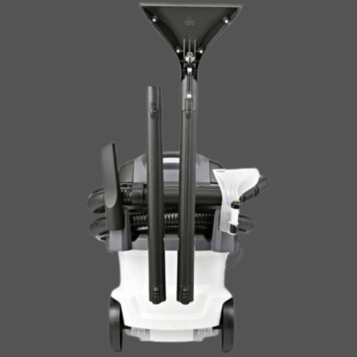 Svuda gdje se traži dubinsko i higijensko čišćenje u obzir dolazi usisavač za čišćenje tvrdih podova i tepiha SE 6.100. Tekućina za čišćenje se uz pomoć pritiska ubrizgava duboko u tepih te se ponovo isisava skupa s rastvorenom nečistoćom. Tako se posebno temeljito uklanja masnoća, nečistoća i neugodni mirisi. Serijski nastavak za tvrde površine osigurava čistoću bez tragova crta na podovima od prirodnog kamena, pločicama, linoleumu i plastičnim podovima. U kombinaciji s Kärcher sredstvima za čišćenje, usisavač za pranje SE 6.100 osigurava dubinsku i temeljitu čistoću – idealno rješenje za alergičare. U opseg isporuke dodatno je uključena mlaznica za pranje tapeciranih površina. Tako je moguće brzo i temeljito očistiti također i tapecirane površine ili automobilska sjedala. Pored toga, SE 6.100 osvaja dodatnim obilježjima komfora, kao npr. parkirni položaj za slučaj prekida rada ili stabilna kvačica za pohranu kabela i crijeva. Kada se izvadi spremnik za svježu vodu, SE 6.100 također se može koristiti i kao potpuno funkcionalni mokri/suhi usisavač.