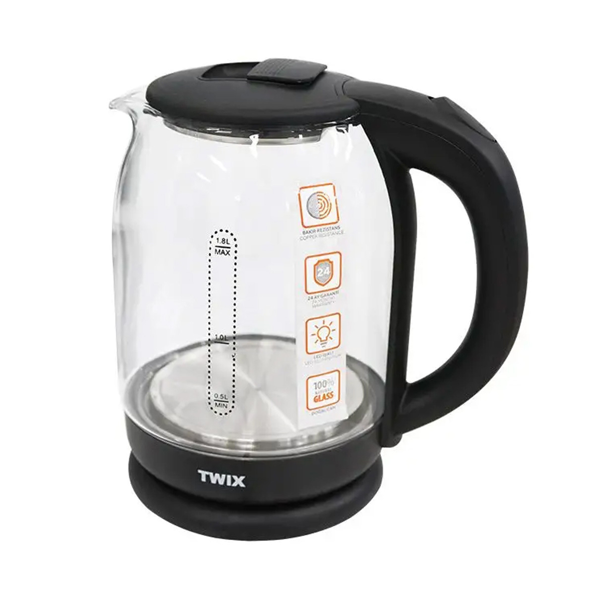 TWIX kuhalo za vodu HMKT‑09 je moderno električno kuhalo snage 1500 W s velikim kapacitetom od 1,8 litara, dizajnirano za brzo i jednostavno zagrijavanje vode za čaj, kavu, instant napitke ili kuhanje. Njegovo prozirno stakleno kućište omogućuje jasan pregled razine vode, što olakšava točno doziranje i kontrolu prije zagrijavanja.