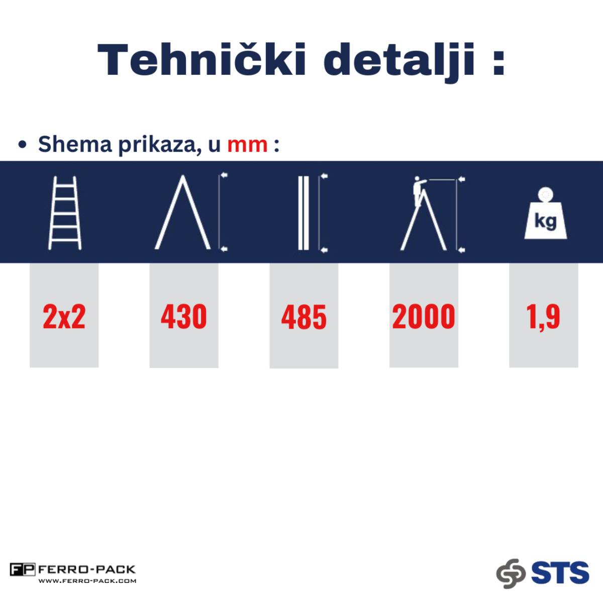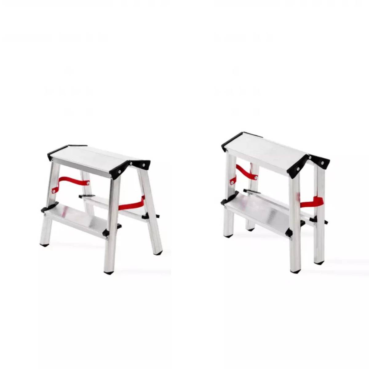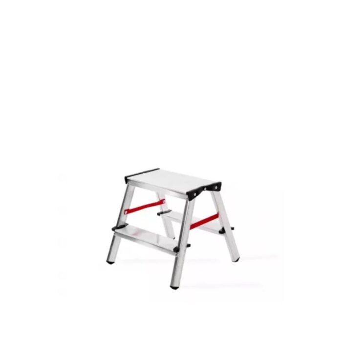 Aluminijske samostojeće ljestve s obostranim pristupom kompaktnih su dimenzija i vrlo praktične za korištenje. Nosivost od čak 150 kg čini ih idealnima za uporabu u kućanstvu. Platforma je dizajnirana tako da se na ljestvama može i sjediti prilikom obavljanja nekog posla.
