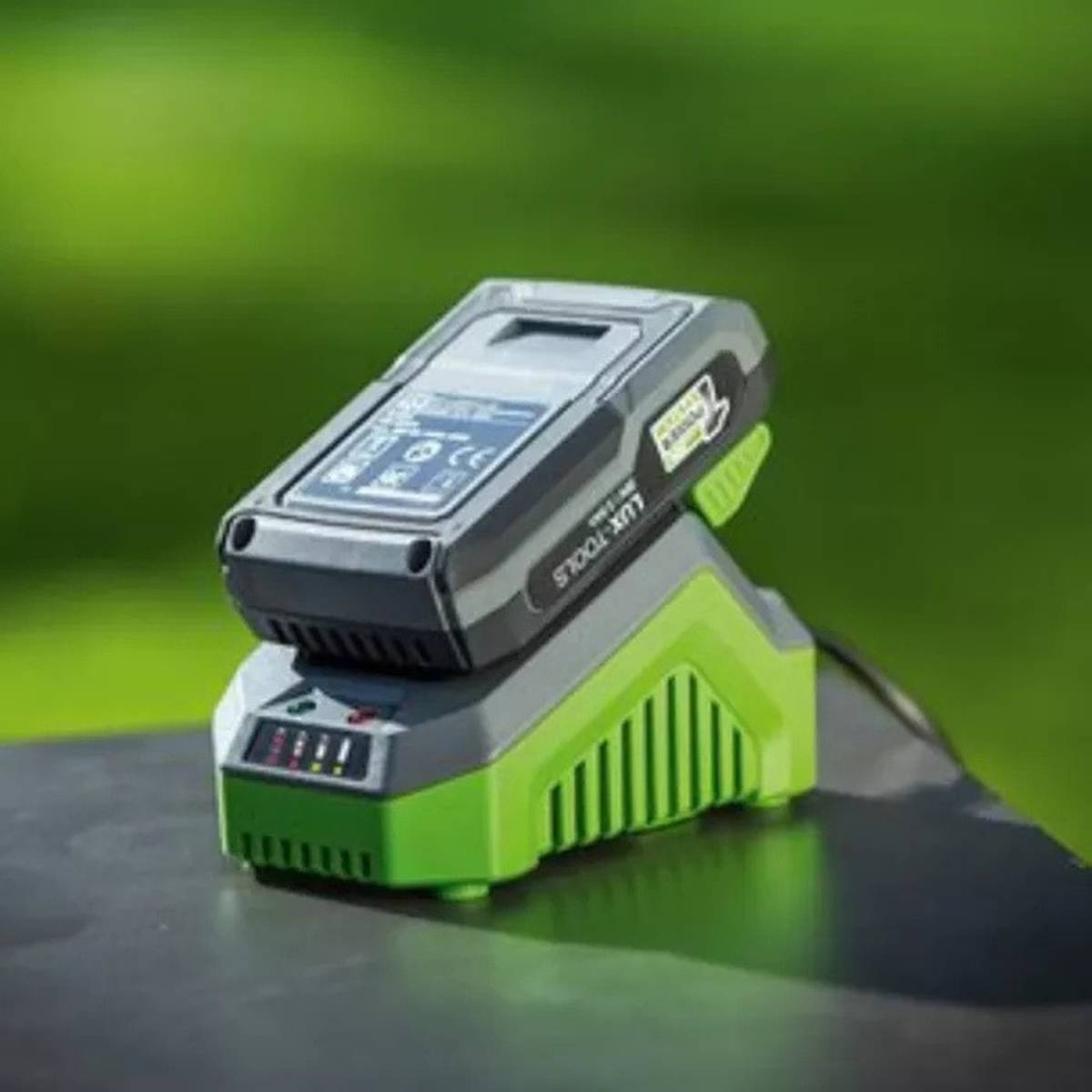 Punjač je kompaktibilan sa baterijom od 2 Ah ili 4 Ah. Potrebno je samo 1 sat za potpuno punjenje baterije od 2 Ah. Punjač u potpunosti napuni svoju 4 Ah verziju za samo 2 sata. Zahvaljujući LED ekranima možete stalno pratiti status punjenja. Pomoću integriranog držača za zid možete puniti punjač blizu ruke i uštedjeti prostor na zidu.