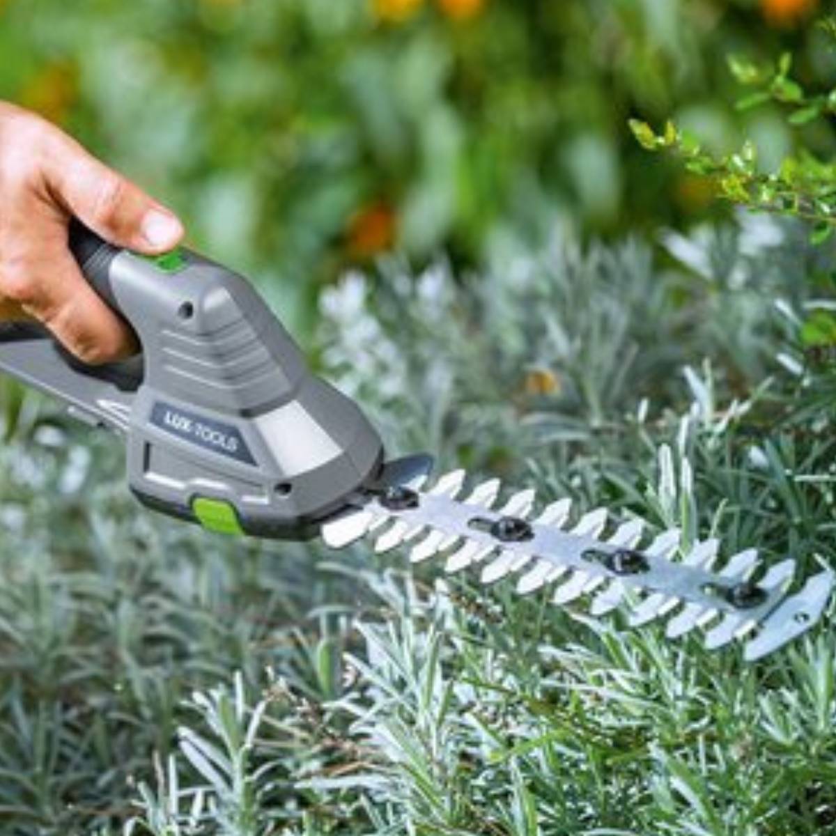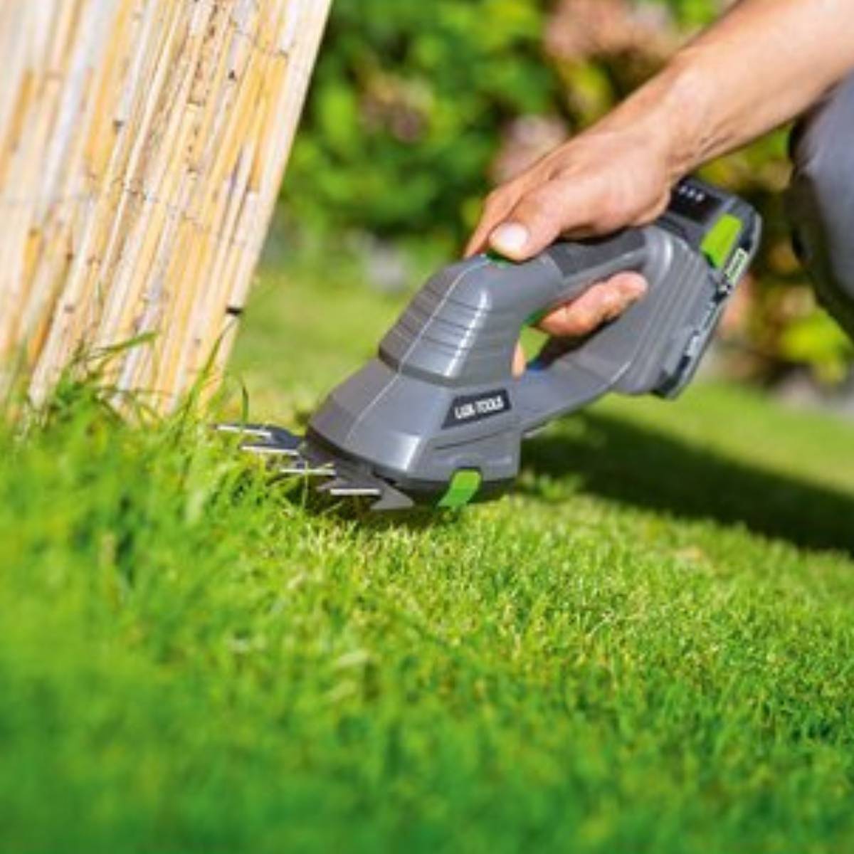 LUX-TOOLS akumulatorske škare za travu i grmlje A-GS-20/20 koriste se za električno rezanje grmlja i rubova travnjaka. S alatom za rezanje na baterije možete se brinuti o vrtu na jednostavan i praktičan način. Isporučeni set dodataka, koji se sastoji od škara za travnjak s dužinom košnje od 10 cm i škare za živicu s dužinom košnje od 20 cm, može se mijenjati bez napora bez upotrebe alata. Zahvaljujući radu pile na baterije, možete raditi neovisno o strujnim utičnicama i izbjegavati duge kablove. Osim toga, pogon karakterizira niska razina buke, što je posebno pogodno u gusto naseljenim područjima. Ergonomski oblikovana glavna ručka s mekim rukohvatom osigurava udobno vođenje električnih škara bez umora. Akumulatorske škare za travu i grmlje dio su LUX 1 PowerSystema i mogu se koristiti s 20 V (18 V nominalno) litij-ionskom baterijom koja pripada ovoj seriji i ima kapacitet od 2 Ah ili 4 Ah. Preporučujemo korištenje baterije od 2 Ah. Baterija i odgovarajući brzi punjač dostupni su zasebno.