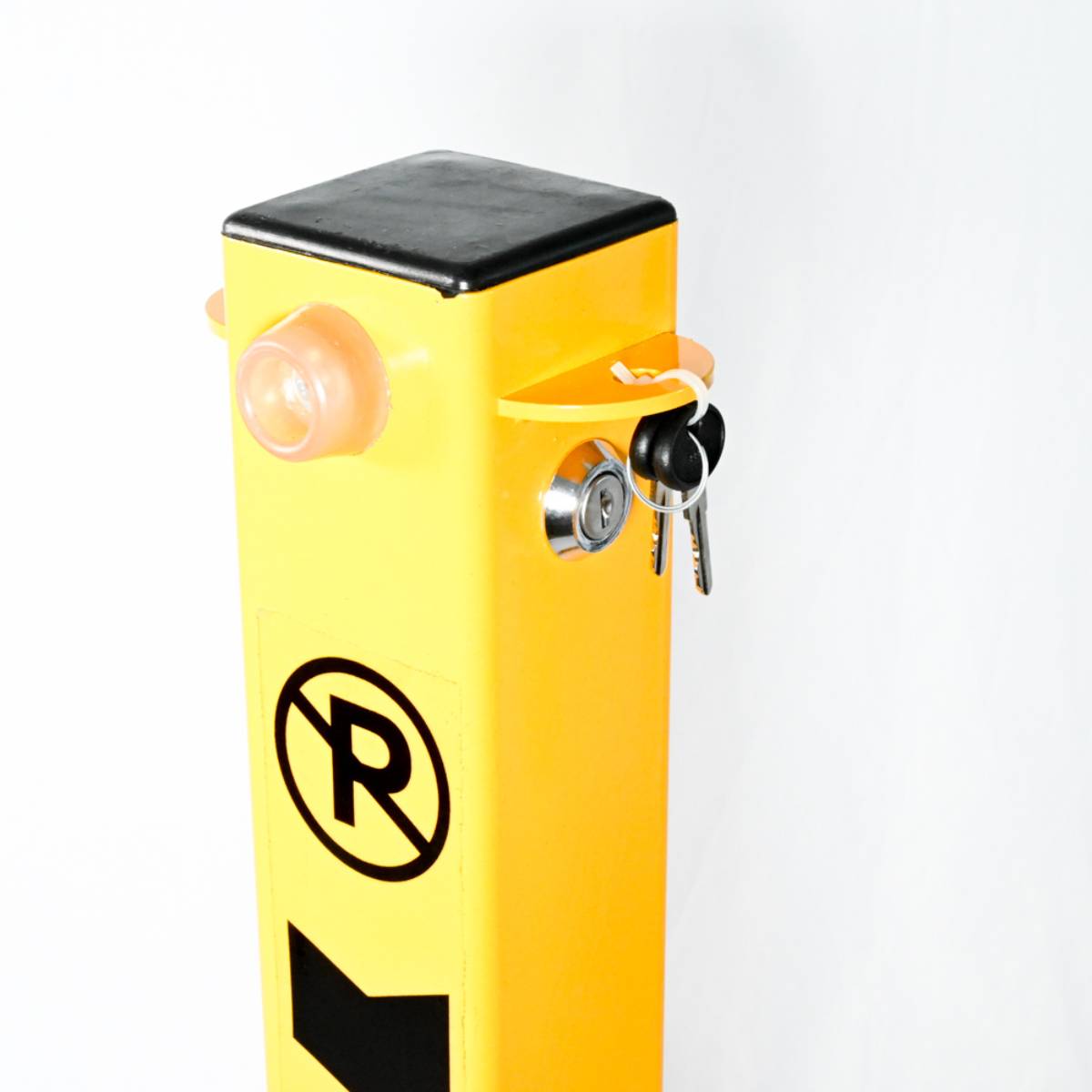 Vertikalna STOP parking barijera s ključem predstavlja pouzdano rješenje za rezervaciju i zaštitu parkirnog mjesta. Zahvaljujući uspravnom dizajnu i reflektirajućim oznakama, barijera je lako uočljiva te jasno označava zabranu parkiranja i danju i noću. Izrađena je od čvrstog čelika i zaštićena slojem žute boje otporne na vanjske utjecaje.