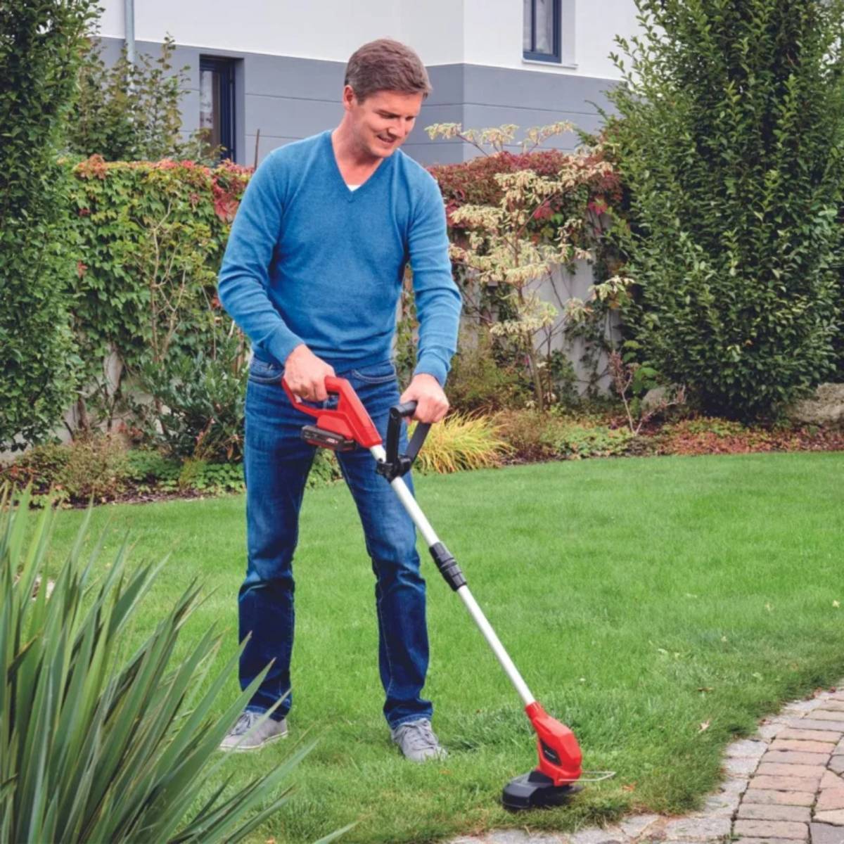 Einhell GC-CT 18/24 Li – Solo akumulatorski trimer za travu čini brz posao sređivanja vrta i travnjaka sa uglovima  i rubovima. Brzo i udobno podrezuje vaš vrt, uz potpunu fleksibilnost. Akumulatorski trimer za travu član je serije Power X-Change visokih performansi. Trimer za travu opremljen je Flower Guardom iz Einhella. Time se osigurava učinkovita zaštita cvijeća i ukrasnog bilja od oštećenja. Beskonačno podesiva, teleskopska dugačka ručka može se prilagoditi tačnim zahtjevima kućnog vrtlara i stoga doprinosi neumornom radu. Sa brzinom oštrice od 8500 obrtaja u minuti, bežični trimer za travu moćan je, dobro opremljen pomagač za održavanje vegetacije na travnjacima, zemljištima i teško dostupnim područjima u vrtu. Oštrica ima širinu rezanja od 24 centimetra.
