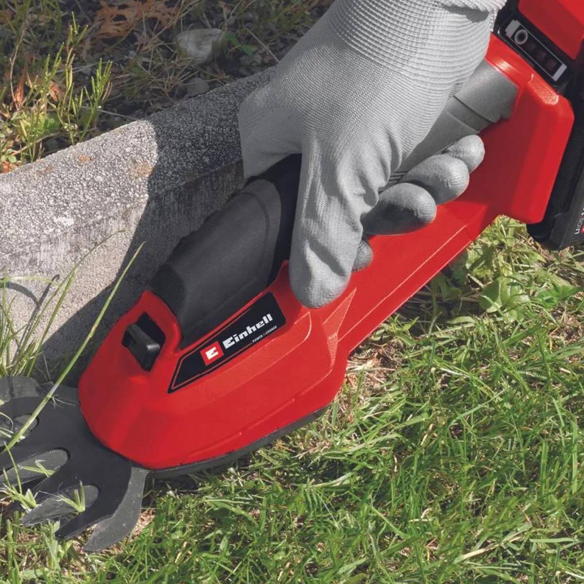 Aku makaze za travu GC-CG 18/1 Li – Solo iz Einhell-a idealan su partner za vrtlare-hobi koji cijene fleksibilnost kada je u pitanju održavanje svog zelenila u formi. Za optimalan prijenos snage na laserski rezane i dijamantski brušene oštrice postoji robustan metalni zupčanik. Nož za košenje trave za održavanje ivica travnjaka je uključen. Sigurnosni prekidač štiti korisnika od nenamjernog pokretanja makaza. GC-CG 18/1 Li dolazi sa mekim rukohvatom za čvrsto, a opet udobno držanje. Čak i duge radne sesije se savladavaju s lakoćom zahvaljujući kombinaciji snage i udobnosti. Ovaj proizvod dolazi bez baterije ili punjača.