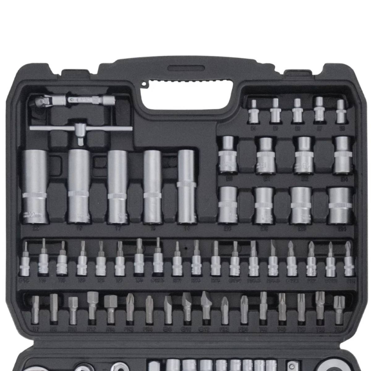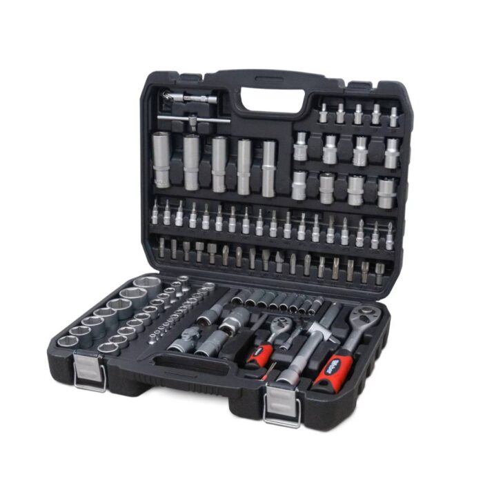 Visokokvalitetni set nasadnih ključeva u praktičnoj plastičnoj kutiji sa 108 alata za svakodnevnu upotrebu.