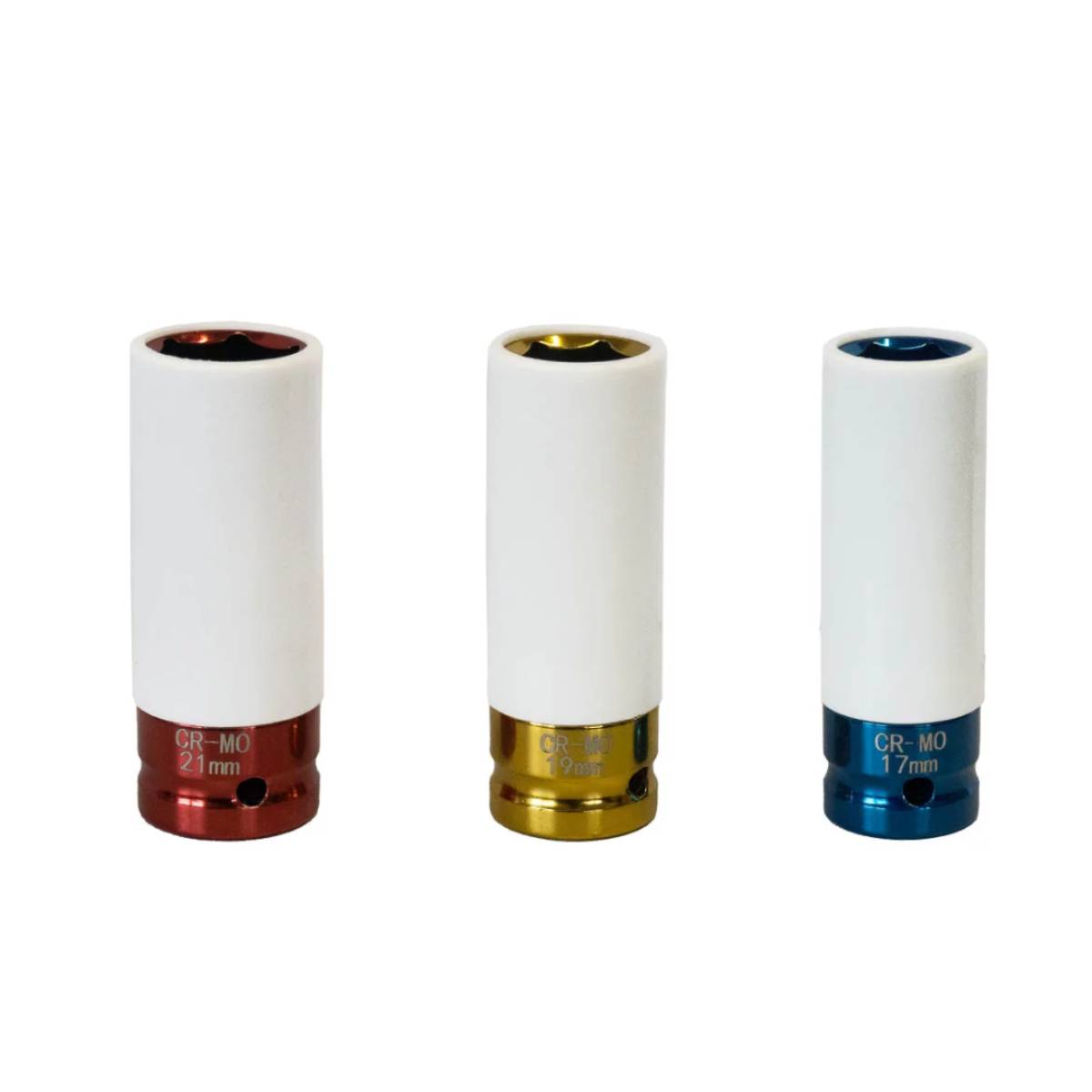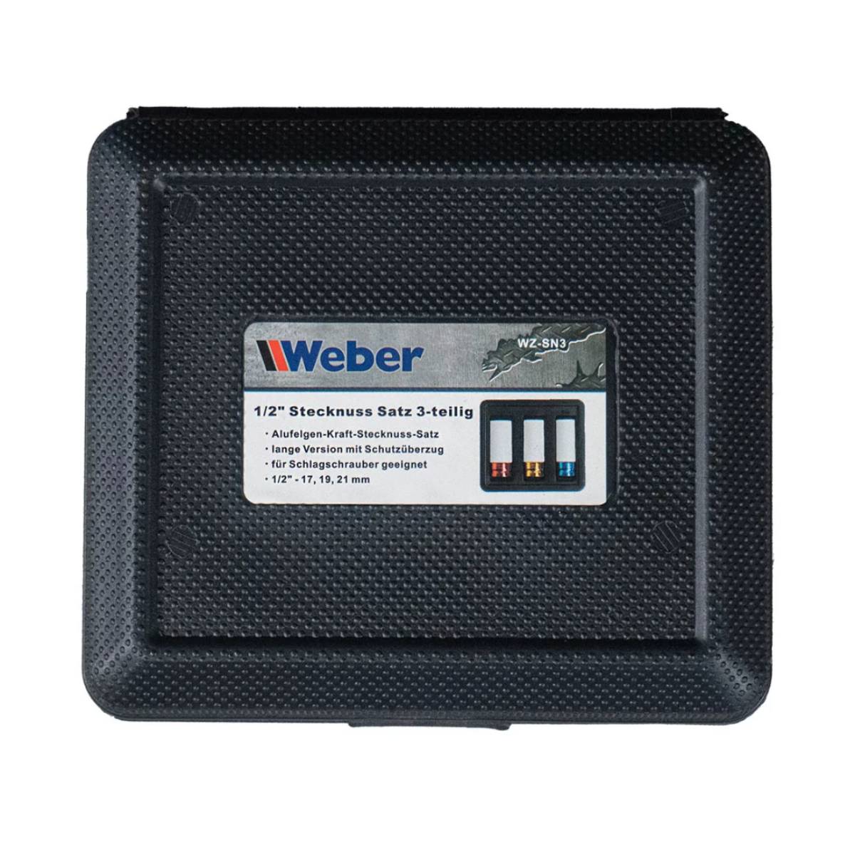 WEBER set nasadnih ključeva sa zaštitom za aluminijske kotače 17, 19 i 21 mm, u PVC kovčegu, 1/2″