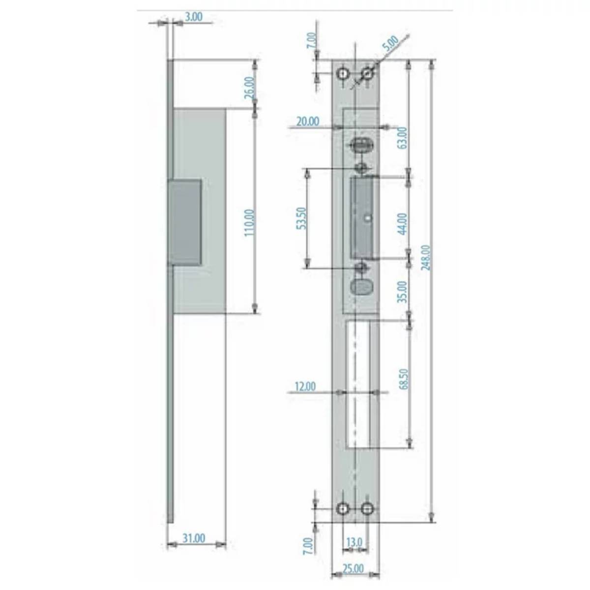 YALE elektroprihvatnik 248x25x3 mm. 8-12V AC