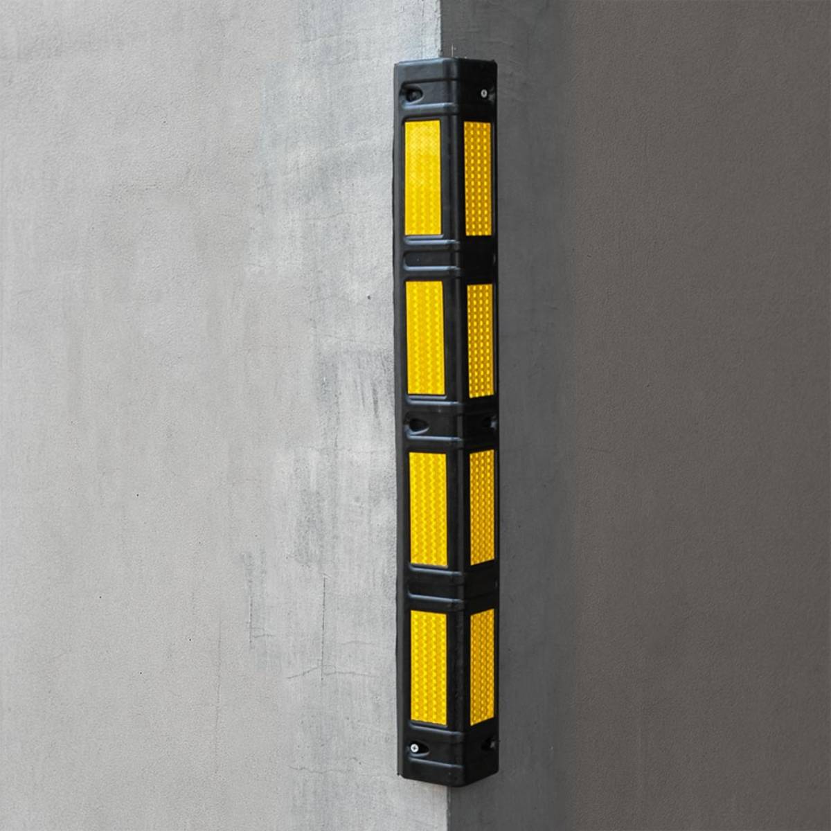 Kutni gumeni odbojnik pravokutnog oblika izrađen je od izdržljive i elastične gume s jasno vidljivim žuto-crnim reflektirajućim trakama koje osiguravaju bolju uočljivost i sigurnost. Koristi se za zaštitu rubova zidova i stupova u garažama, skladištima, industrijskim pogonima i parkiralištima.