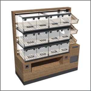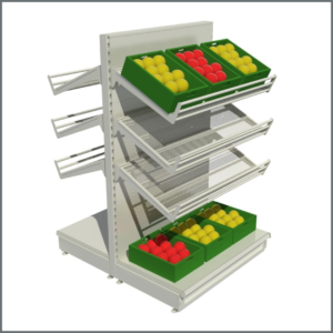 Pažljivim odabirom materijala i boja u dijelu trgovine sa voćem i povrćem stvaramo atmosferu koja kupnju čini ugodnom