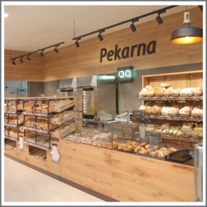 Kombinacija mirisa pekarskih proizvoda, toplog svjetla i polica u kombinaciji prirodnih i umjetnih materijala pojačava osjećaj ugode kod kupaca.